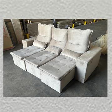 Sofá com estrutura de madeira pinus e eucalipto reflorestados, com excelente resistência e durabilidade. Assentos retrátil, com costura dupla, semipillow top, Espuma D-33 Soft e mola espiral. Os encosto são reclinável, com costura dupla, desmontável e com enchimento de espuma. Percinta elástica nos assentos e encosto tencionada através de maquina, para maior conforto e qualidade. Pés inclusos de polietileno, assim possibilitando a abertura dos assentos com mais leveza e resistência.